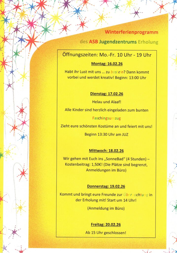 Winterferienprogramm 2025 Jugendzentrum Erholung
