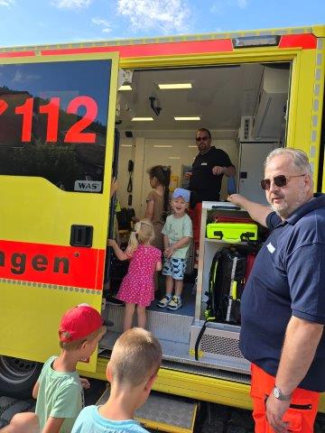 Das Team der Sonneberger Rettungswache war unterwegs, um den Kleinsten der Kleinen einen Rettungswagen zu zeigen und zu erklären.