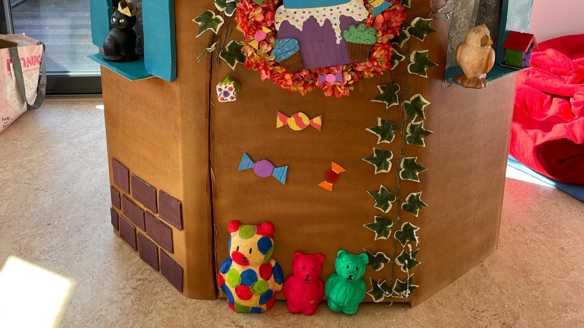 Passend zu unserem Jahresthema „Märchen“ gestalteten wir mit den Kindern ein Hexenhäuschen