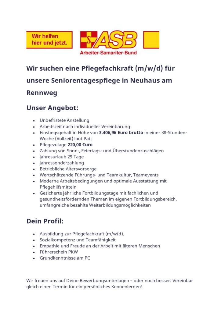 Stellenangebote Aktuelle Stellenangebote des ASB Sonneberg finden sie auch über die Jobbörse der Arbeitsagentur.